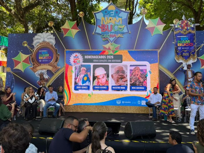 O Governo de Pernambuco divulgou, nesta quarta-feira (4), a programação oficial do Carnaval 2026, que contará com investimento de R$ 77,6 milhões e uma série de ações culturais e de segurança em todo o estado. A festa deste ano homenageará os cantores João Gomes, Nena Queiroga, Chico Science e o Maestro Duda, nomes que representam diferentes vertentes da música pernambucana.