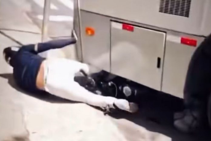 Nas imagens, o ônibus atinge a motocicleta e arremessa o condutor ao chão. Apesar do impacto, o motociclista se levanta rapidamente e evita ser atropelado. Em seguida, ele vai até a porta do ônibus e discute com o motorista. A moto ficou presa sob o veículo.